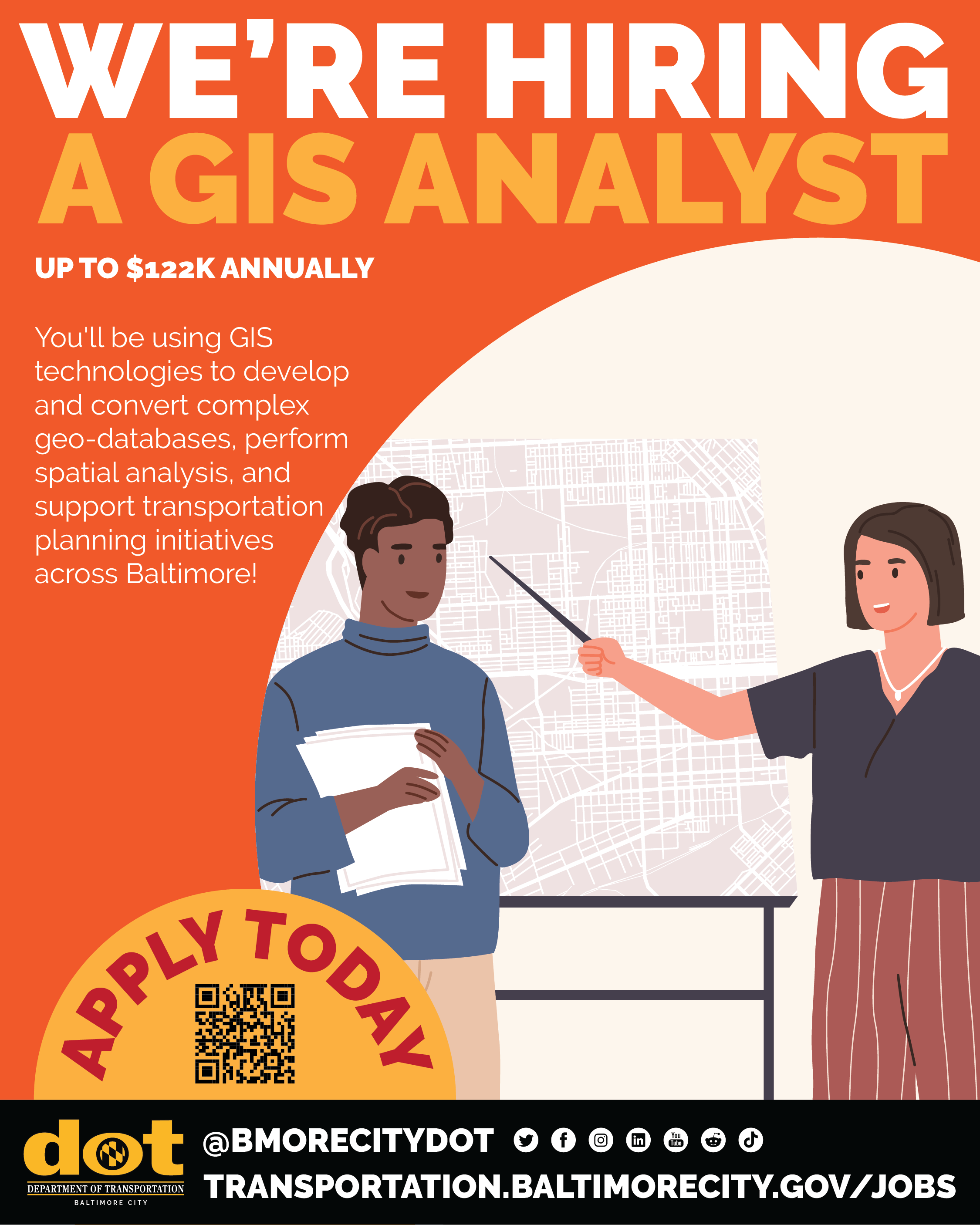 πΊοΈ We're hiring a GIS Analyst! π° Up to $122K annually You'll be using GIS technologies to develop and convert complex geo-databases, perform spatial analysis, and support transportation planning initiatives across Baltimore. Ready to join our team? Apply today at https://buff.ly/bR5kZ1v