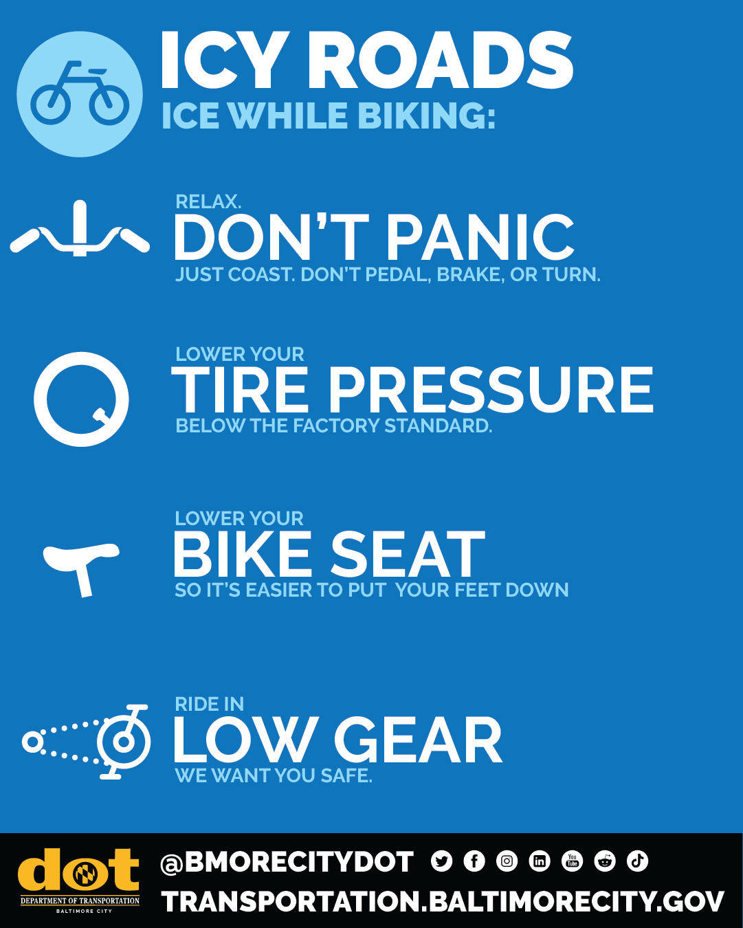 π²βοΈ Icy roads while biking π§ Relax; donβt panic. If you hit ice, just coast. Donβt pedal, brake, or turn. π Lower your tire pressure below the factory standard for better traction. πΊ Lower your bike seat so itβs easier to put your feet down. βοΈ Ride in low gear; we want you safe. Conditions ca...Read more